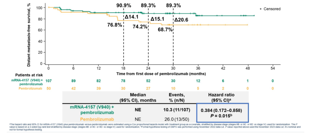 [1]Jeffrey S.Weber,Muhammad Adnan Khattak,Matteo S.Carlino,et al.Individualized neoantigen therapy mRNA-4157(V940)plus pembrolizumab in resected melanoma:3-year update from the mRNA-4157-P201(KEYNOTE-942)trial.ASCO 2024;Abstract LBA9512.