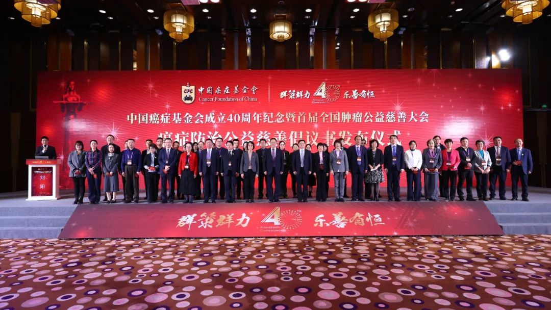 2024年11月23日,在中国癌症基金会成立40周年纪念暨首届全国肿瘤公益慈善大会上,举行了中国癌症基金会癌症防治公益慈善倡议书发布仪式。