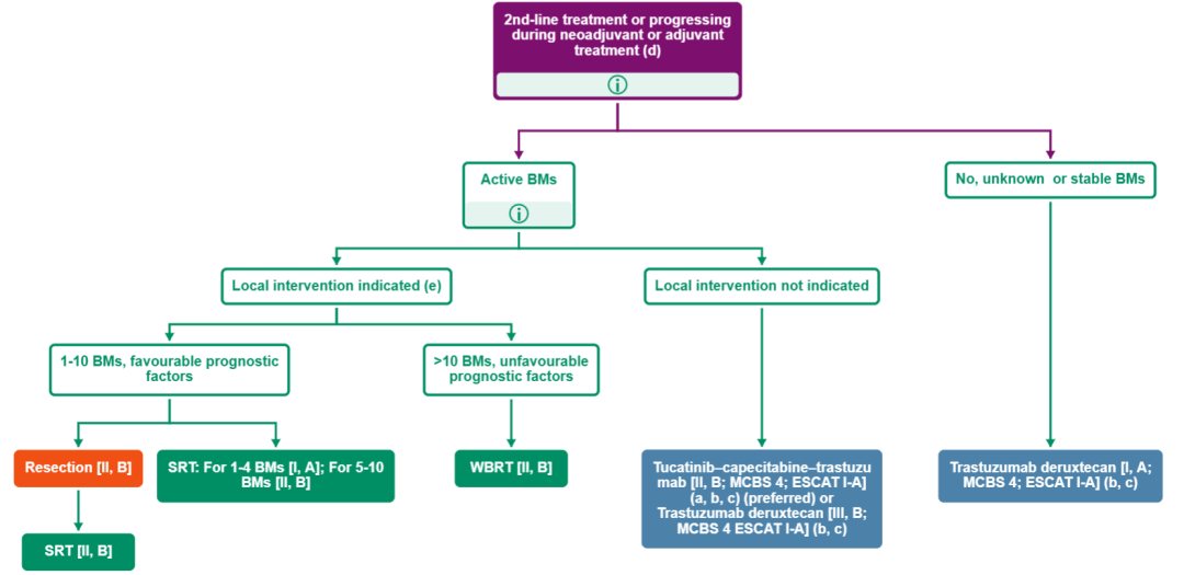 从上述研究可见,T-DXd无论是在稳定性、活动性脑转移,抑或致命性极高的软脑膜转移HER2表达乳腺癌患者中,均展现出极高的颅内疾病控制疗效。这些数据将进一步改变当前的临床实践,例如即将更新的2025版CBCS指南推荐:对于HER2+晚期乳腺癌二线治疗,无论是否有脑转移均应优选T-DXd;而在线更新的ESMO-MBC指南则推荐:对于二线治疗或新辅助/辅助治疗进展的患者,无/未知/稳定性脑转移的情况下均可优选T-DXd[16]