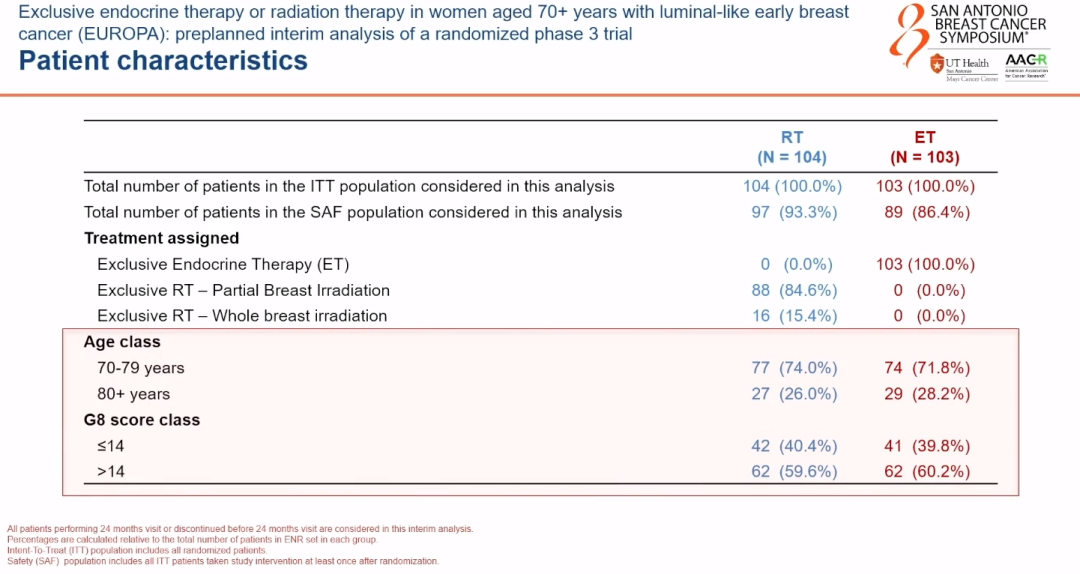 Prof.Icro Meattini:Yeah,this is an interim analysis on the first 152 patients recruited and randomised in this trial.The final sample size of the trial will be around 1,000 patients.We already see an important signal in terms of decrease of health-related quality of life in patients receiving endocrine therapy as compared to patients receiving only radiotherapy.It’s not really unexpected.We do believe that probably these potentially fragile patients may be suitable for one of the two treatment options and probably radiotherapy might be related to better outcomes in terms of health-related quality of life.