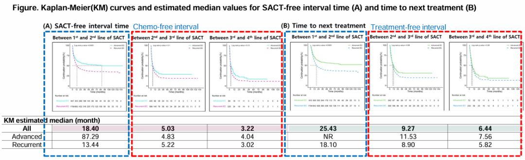 从SACT1到3,治疗持续时间(3.5、2.8和2.0个月)和SACT无治疗间隔的中位数(18.4、5.0和3.2个月)显示出下降趋势。