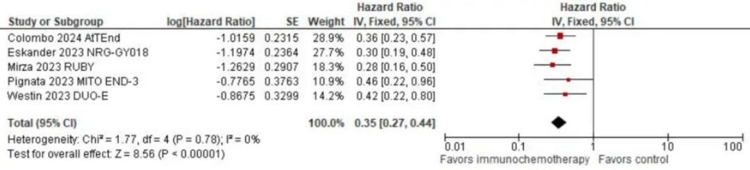 在原发性晚期或复发性子宫内膜癌患者中,免疫联合化疗方案相比标准化疗可显著改善总体人群的PFS与OS。亚组分析显示,无论患者MMR状态(dMMR或pMMR),免疫联合化疗均可带来PFS获益。本研究支持将免疫治疗纳入原发性晚期或复发性子宫内膜癌的标准治疗体系。