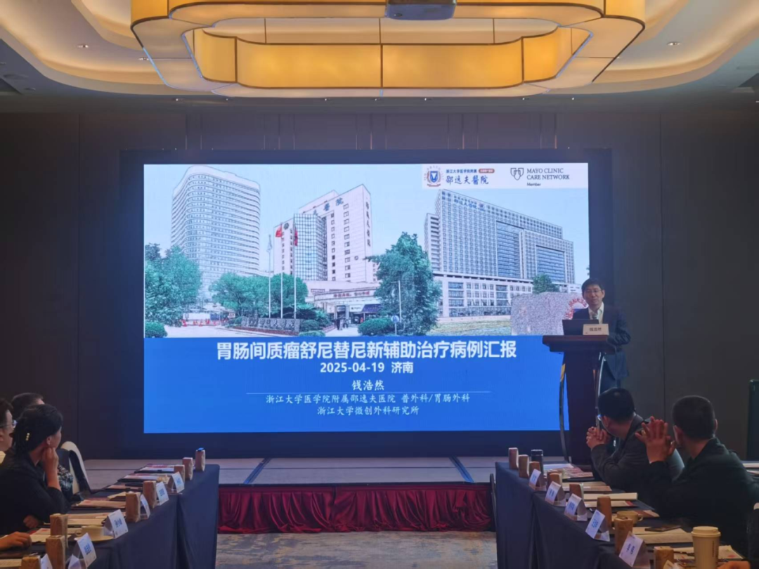 大会最后一节由哈尔滨医科大学附属肿瘤医院曲宏岩教授主持,浙江大学医学院附属邵逸夫医院钱浩然教授进行了《胃肠间质瘤舒尼替尼新辅助治疗病例汇报》,成功应用舒尼替尼新辅助治疗复杂胃肠间质瘤;同时,术后舒尼替尼辅助治疗,无2级以上毒副作用,三月复查未见复发。该案例系统性验证了舒尼替尼在特殊基因型胃肠间质瘤新辅助治疗中的有效性,为临床指南更新提供了重要实践依据,相关成果将为同类难治病例开辟新的治疗路径。