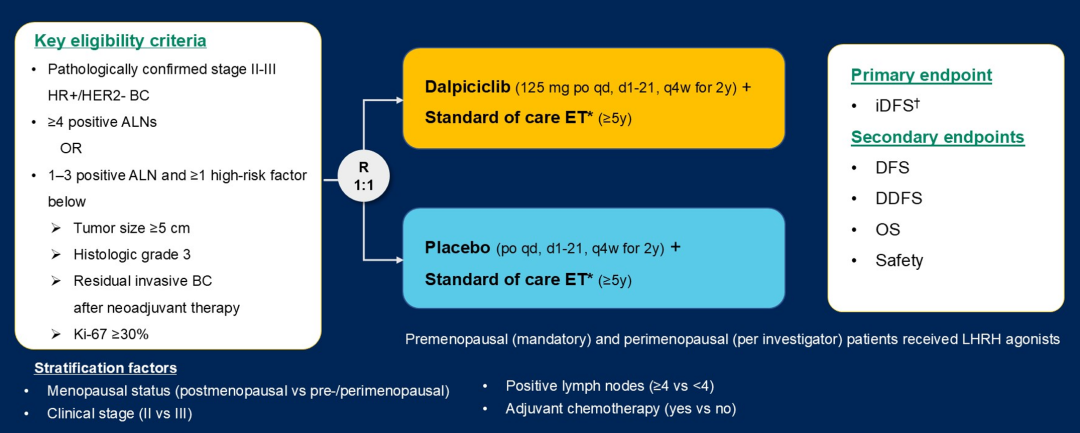 [5]Zhimin Shao,et al.Dalpiciclib(Dalp)plus endocrine therapy(ET)as adjuvant treatment for HR+/HER2–early breast cancer(BC):The randomized,phase 3,DAWNA-A trial.ASCO 2025;Abstract#515
