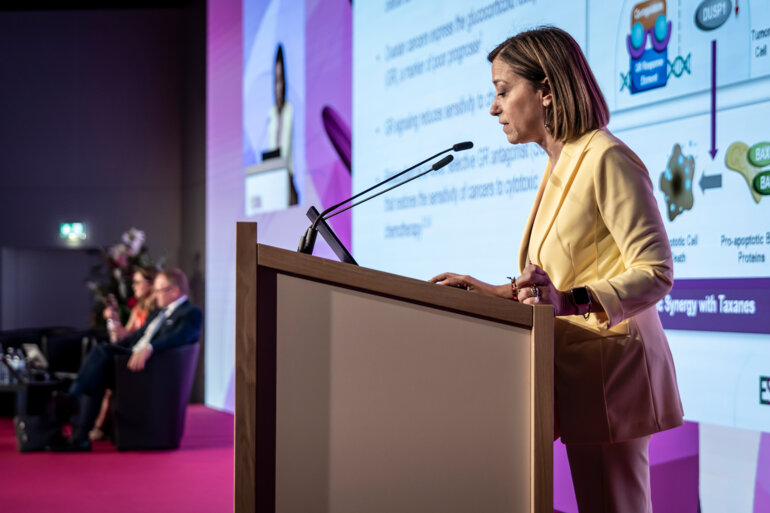 Domenica Lorusso在2025年ESMO妇科癌症大会上介绍ROSELLA试验的结果
