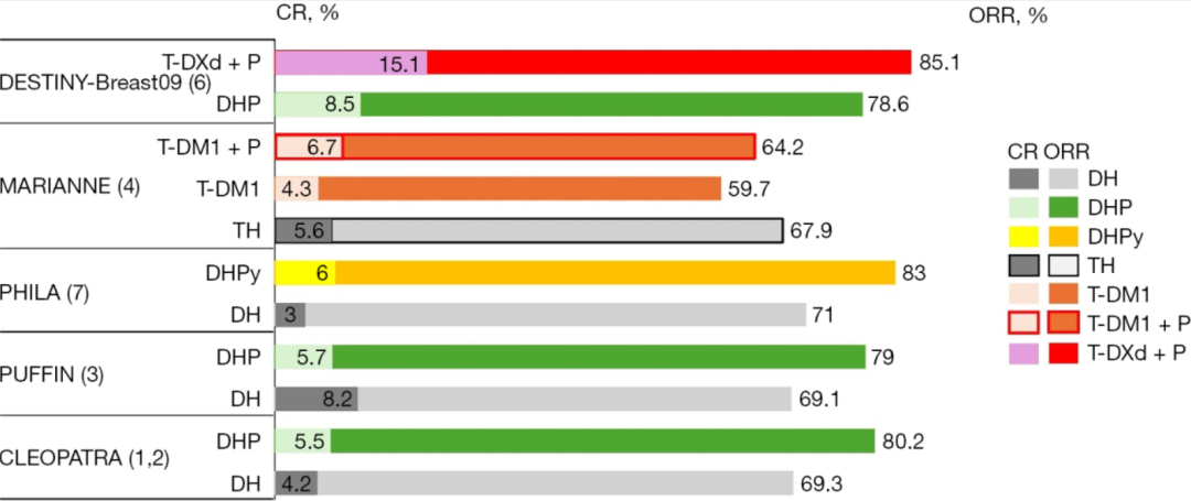 图3.不同研究中HER2阳性乳腺癌一线治疗的ORR