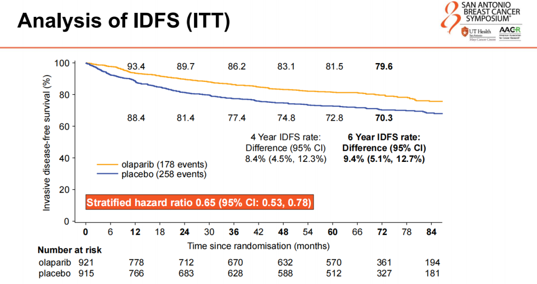 △2024 SABCS上公布的OlympiA研究6年随访iDFS曲线