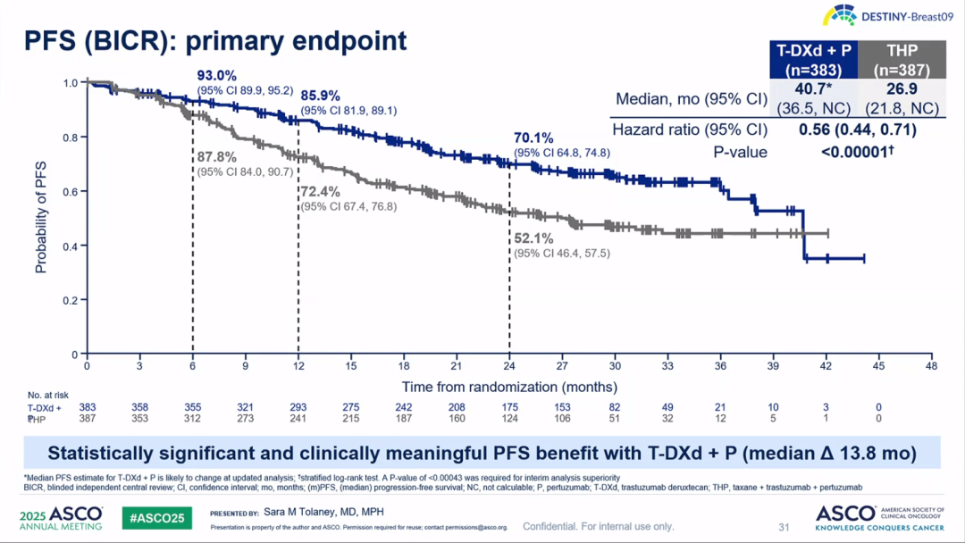图2.DESTINY-Breast09研究全人群BICR评估的PFS及亚组分析