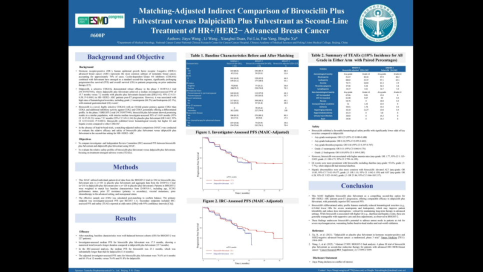 [3]、2.Wang J,Wang L,Duan X,Liu F,Yang F,Xu B.Matching-adjusted indirect comparison of bireociclib plus fulvestrant versus abemaciclib plus fulvestrant as second-line treatment of HR+/HER2−advanced breast cancer.2025 ASCO.Abstract e15141.