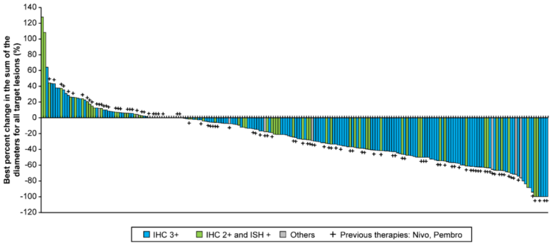 图3.目标病灶直径总和相对于基线的最佳百分比变化