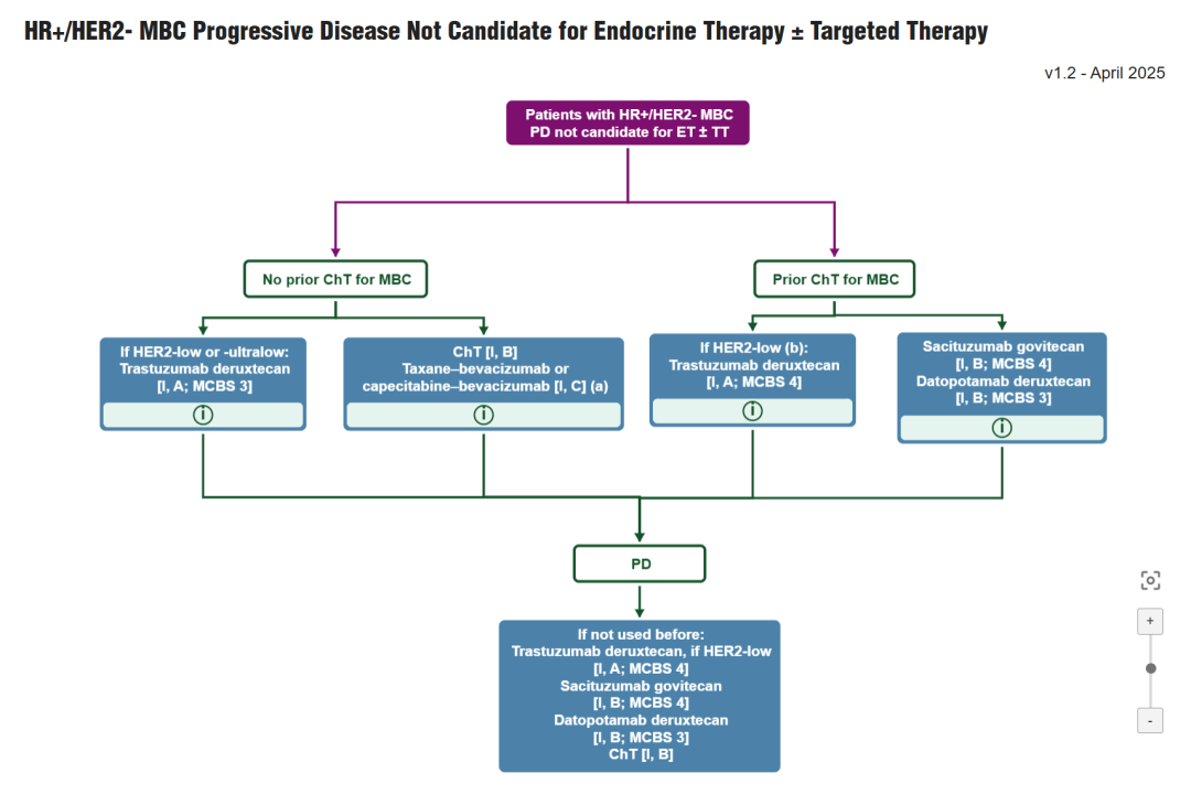 《CSCO BC指南2025》对HR+/HER2-low晚期乳腺癌解救治疗推荐