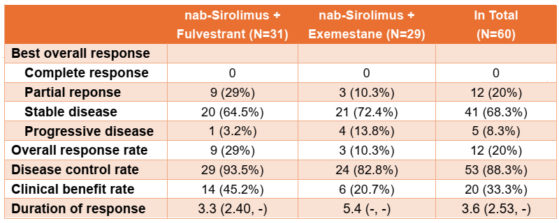 表3.nab-Sirolimus联合氟维司群队列的肿瘤反应