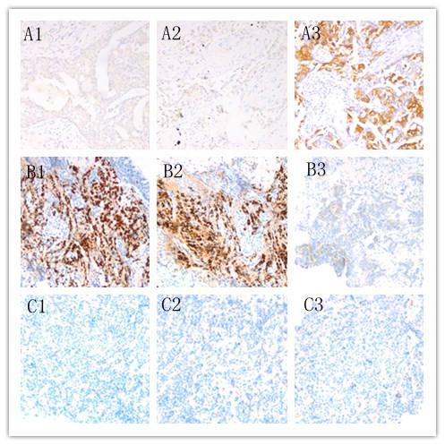 A1-3:原发灶ER,PR,HER2免疫组化