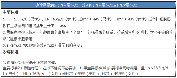 表1. 真性红细胞增多症WHO 2016诊断标准