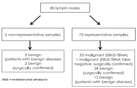 在一项肺癌诊断和分期的效果对比研究中,作者比较了TBNA及EBUS-TBNA对肺癌诊断和分期的效果。结果显示对肺癌诊断的阳性率,两者差异无统计学意义,但存在EBUS-TBNA较TBNA略低的趋势。因此EBUS - TBNA准确性引起了争议。