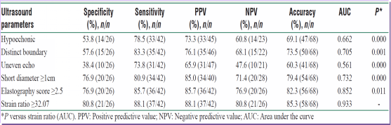 图3 EBUS弹性成像对良恶性淋巴结的鉴别诊断效果