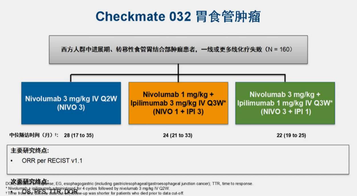 CheckMate032研究的研究设计如下图所示,主要终点为ORR。