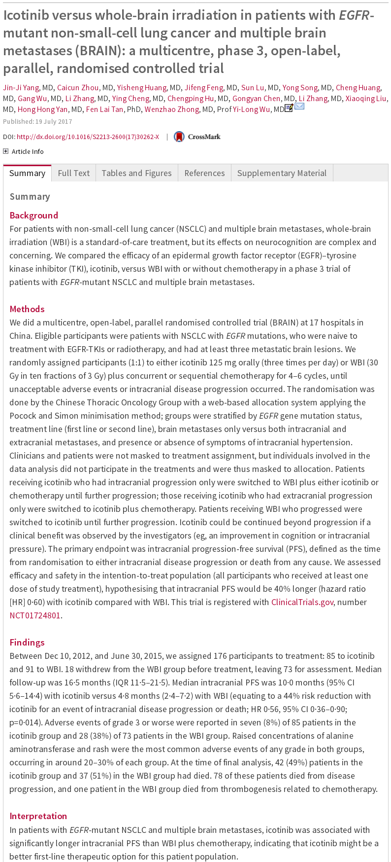 - WCLC重磅研究——NSCLC脑转移靶向治疗再进一步