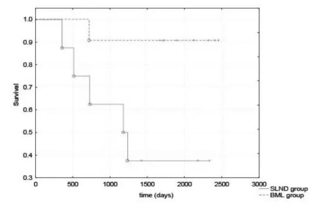 图1. SLND组和BML组生存曲线的分析