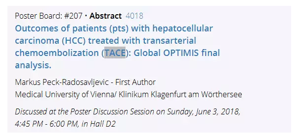 摘要4018:经肝动脉化疗栓塞术(TACE)治疗肝细胞癌(HCC)患者的全球OPTIMIS研究最终分析结果