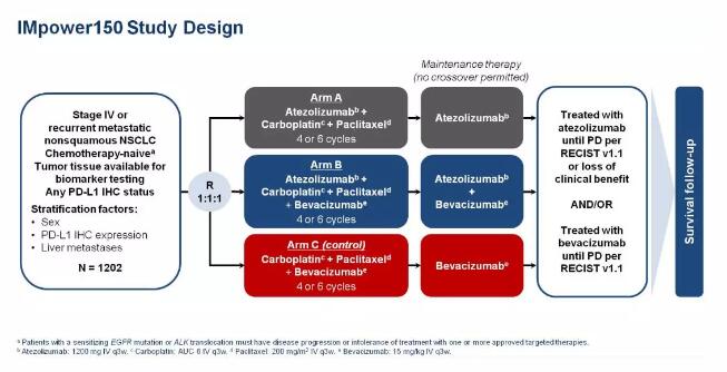 atezolizumab+ 化疗 ± 贝伐珠单抗 vs 化疗+贝伐珠单抗在初治非鳞、非小细胞肺癌中的研究:IMpower150中期OS分析