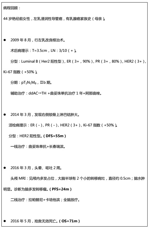 该病例是一例Ⅱb期的、绝经前HER2+/HR+乳腺癌患者,在术后“曲妥珠单抗+化疗”辅助治疗5年后发生肿瘤转移进展。该病例引起了在场专家的热烈讨论,主要围绕新辅助靶向治疗、双靶向治疗、HER2耐药以及乳腺癌基因检测等话题。