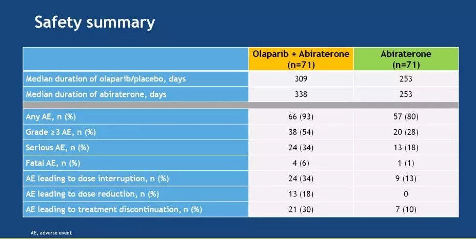 结论:这是第一项显示PARP抑制剂联合阿比特龙治疗mCRPC患者临床获益的研究,且无需考虑HRRm状态。虽然安全性数据不太有利于联合组,但未发现对生活质量产生不利影响。