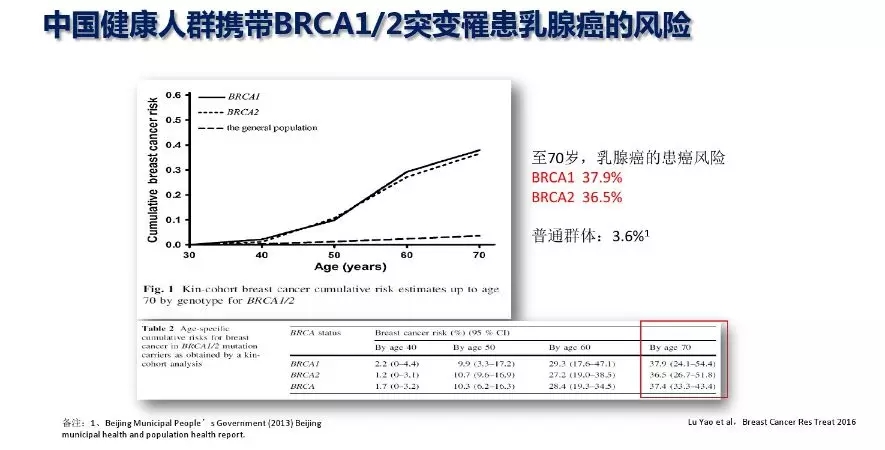 检测BRCA的目的到底是什么呢?主要是可以对一些有家族史的乳腺癌患者或者是高危健康人群做发病风险的评估。如果有这个基因突变的话,那么她发病的风险要明显地增高,对于这个疾病的筛查就要更紧密,甚至要做一些预防性的处理。所以就这个检测来说,应该是针对两类人群有不同的意义。
