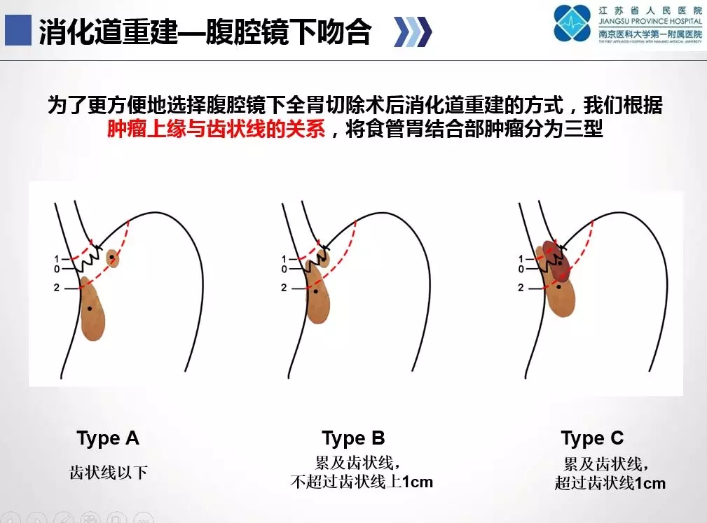 食管胃结合部癌消化道重建分为两大类:近端胃切除后消化道重建和全胃切除后消化道重建。