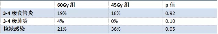2014-2018年,22家医院共176例患者入组,其中160例(60Gy:84例;45Gy:76例)患者完成方案规定的治疗纳入本次分析。中位年龄65岁,女性占58%,90%患者PS评分为0-1分。高剂量照射显著提高患者2年生存率和中位生存时间。两组客观缓解率和无疾病进展无显著差异。高剂量照射未显著增加3-4级食管炎和肺炎。低剂量组有更多的粒缺感染倾向。其他3-4级毒性2组无显著差异。共3例患者出现治疗期间死亡,其中60Gy组2例(粒缺感染、主动脉夹层),45Gy组1例(血小板减少性出血)。