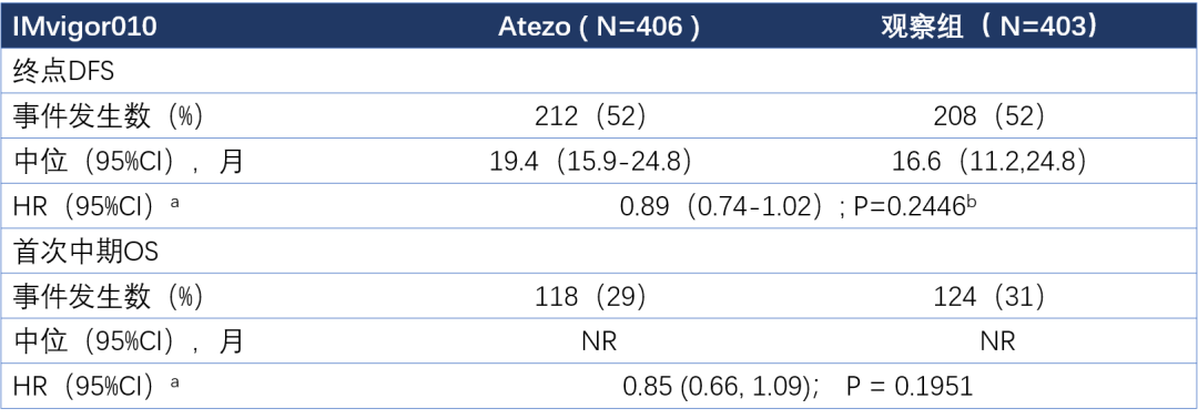注:NR,未达到。截止日期:2019年11月30日。a按照淋巴结转移状态、术后分期、PD-L1状态。bP值为双侧检验