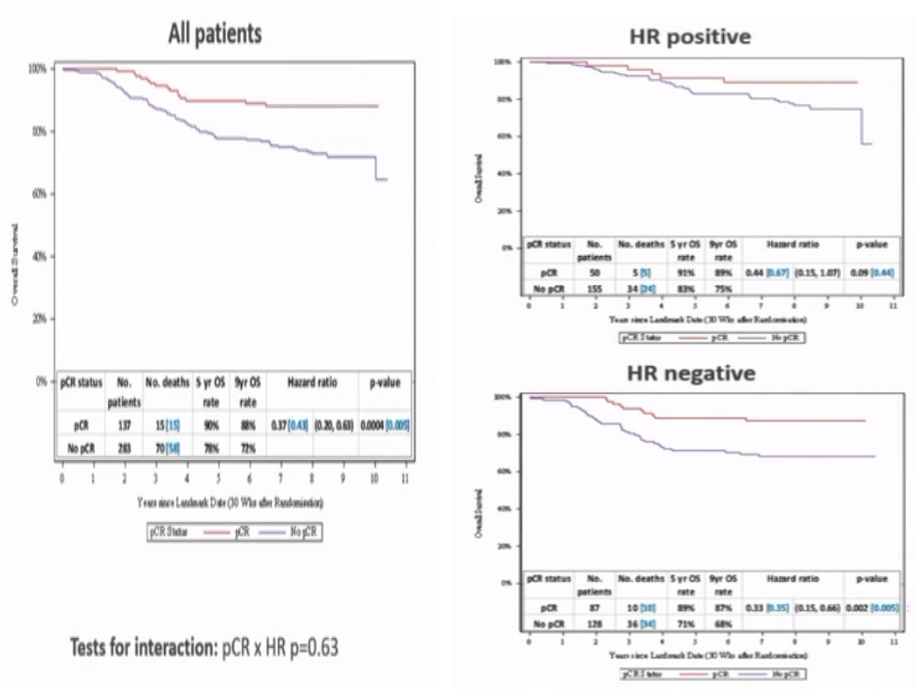 NeoALTTO研究亚组分析显示,经T+L治疗患者中HR-人群pCR率更高,达pCR者OS率更高
