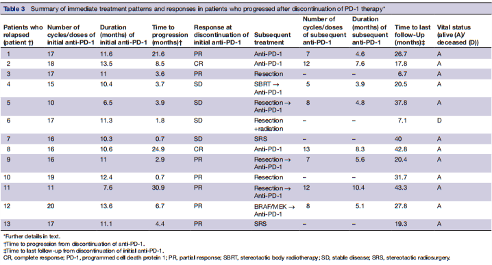Pokorny, Rebecca et al. “Real-world experience with elective discontinuation of PD-1 inhibitors at 1 year in patients with metastatic melanoma.” Journal for immunotherapy of cancer vol. 9,1 (2021): e001781. doi:10.1136/jitc-2020-001781