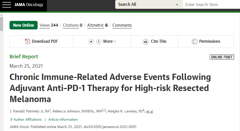 JAMA ONCO丨高危黑色素瘤切除后抗PD-1辅助治疗患者的慢性免疫相关不良事件