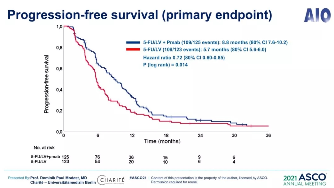 【Abstract #:3503】5-氟尿嘧啶/亚叶酸钙(5FU/LV)联合帕尼单抗对比单纯5FU/LV用于RAS野生型转移性结直肠癌(mCRC)的维持治疗:PANAMA试验(AIO KRK 0212)
