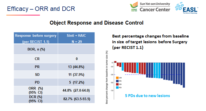 这项研究显示信迪利单抗+FOLFOX-HAIC的术前ORR达到44.8%,DCR 82.7%,转化切除率高达65.5%,其中15.8%达到pCR。长期随访数据显示全组患者中位PFS达到15.7个月,特别是接受手术治疗的患者,中位PFS预计超过24个月,治愈的可能大大增加。患者的OS数据还将进一步随访。作为第一个在国际大会上口头汇报的晚期肝癌转化治疗的前瞻性研究,该研究显示出极具潜力的初步结果,和历史数据相比极大改善了此类患者的预后,有望为局部晚期肝癌患者开创新的治疗模式,因此也引起了西方学者的关注,将该研究在大会新闻发布会环节进行重点推介。