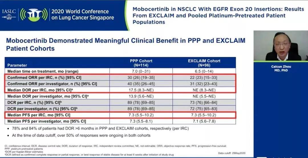 这项研究表明,Mobocertinib对既往接受EGFR-TKI治疗且疾病控制≥6月后进展的EGFR 20ins晚期NSCLC具有一定疗效,ORR可达40%,DOR能达13个月,且安全可控。