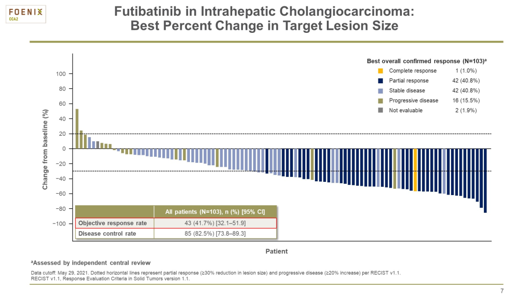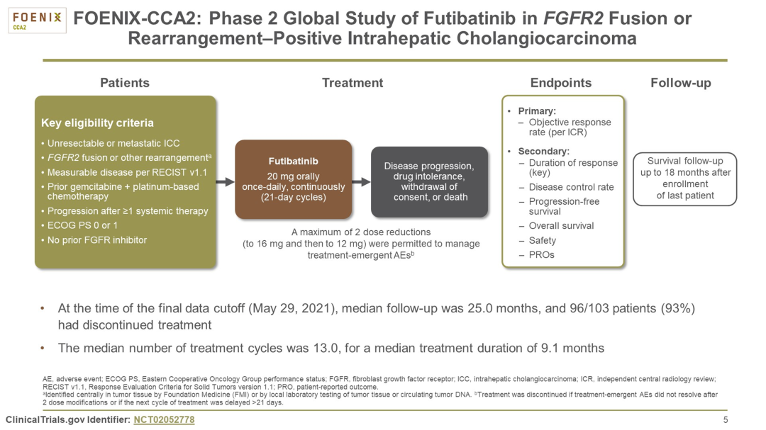 FOENIX-CCA2研究结果更新:福巴替尼(futibatinib,TAS-120)治疗FGFR2融合/重排的肝内胆管癌的疗效和安全性