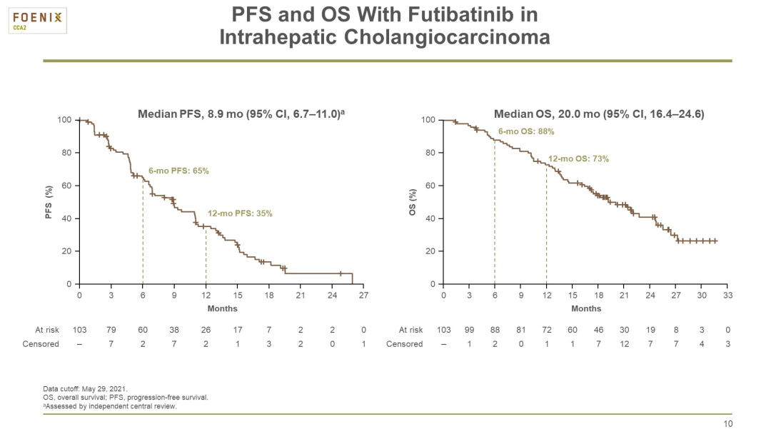[2]Lipika Goyal, et al. Updated results of the FOENIX-CCA2 trial: Efficacy and safety of futibatinib in intrahepatic cholangiocarcinoma (iCCA) harboring FGFR2 fusions/rearrangements. J Clin Oncol 40, 2022 (suppl 16; abstr 4009). DOI:10.1200/JCO.2022.40.16_suppl.4009