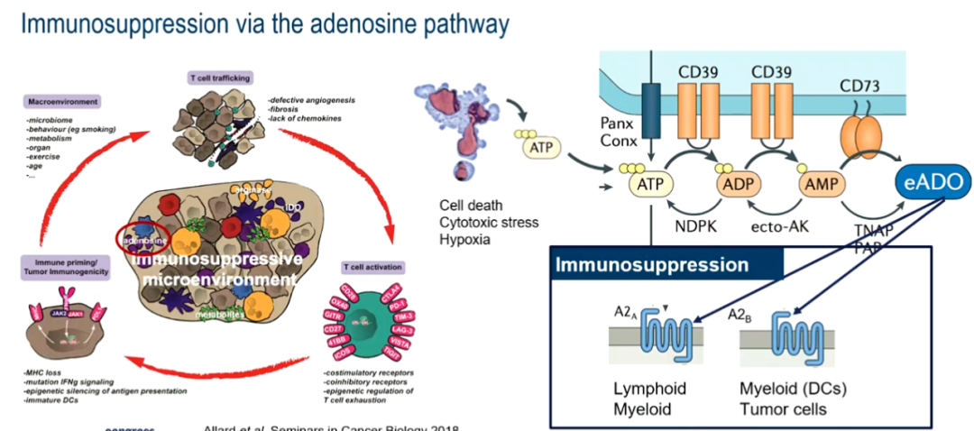SYNERGY研究引入了新的治疗靶点药物——抗CD73抗体oleclumab。近年来,该抗体药物相关研究结果显示,CD73过表达参与了肿瘤微环境免疫抑制性腺苷的产生,并与三阴性乳腺癌患者不良预后相关。在三阴性乳腺癌患者治疗中,oleclumab阻断CD73可能会增强抗PD-L1联合化疗的抗肿瘤反应。