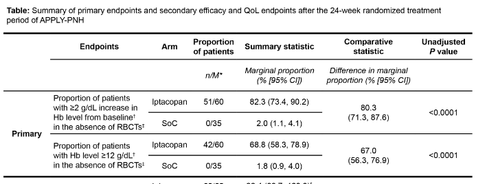 Apply-PNH研究III期结果:Iptacopan单药治疗对于PNH患者的疗效优于标准治疗(SoC,指Eculizumab或Ravulizumab),且安全性良好
