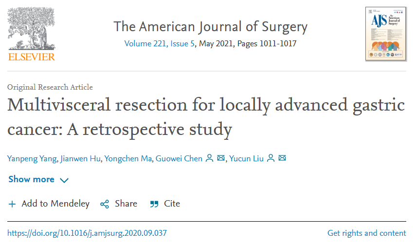 9.I.Ozer,EB Bostanci,T Orug,et al.Surgical outcomes and survival after multiorgan resection for locally advanced gastric cancer Am J Surg,198(1)(2009),pp.25-30