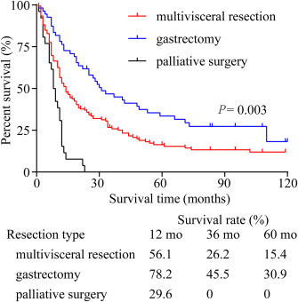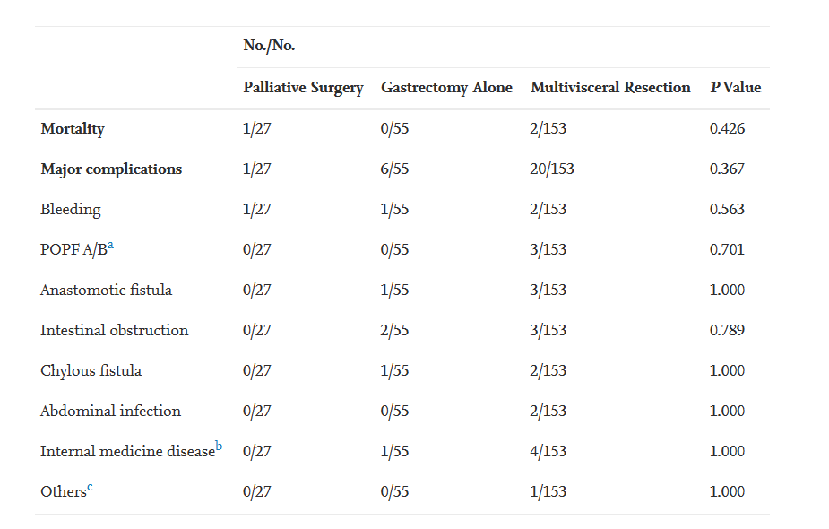 总之,接受多脏器切除的cT4b胃癌患者具有可接受的死亡率和发病率。多脏器切除的独立预后因素是切除的完整性、广泛的淋巴结受累(>15)、血管癌栓和术后化疗。
