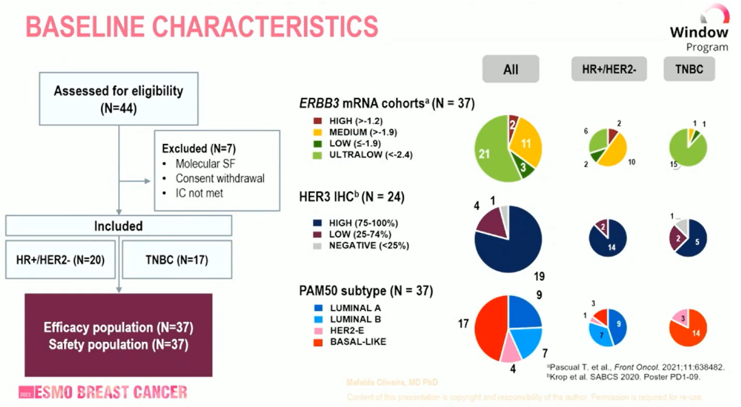 [5]F.Brasó-Maristany,et al.HER2 expression and early response to patritumab deruxtecan(HER3-DXd)in early-stage hormone receptor-positive/HER2-negative(HR+/HER2-)breast cancer(BC):a correlative analysis from SOLTI-TOT-HER3 trial.ESMO Breast cancer 2023;abstract 3MO