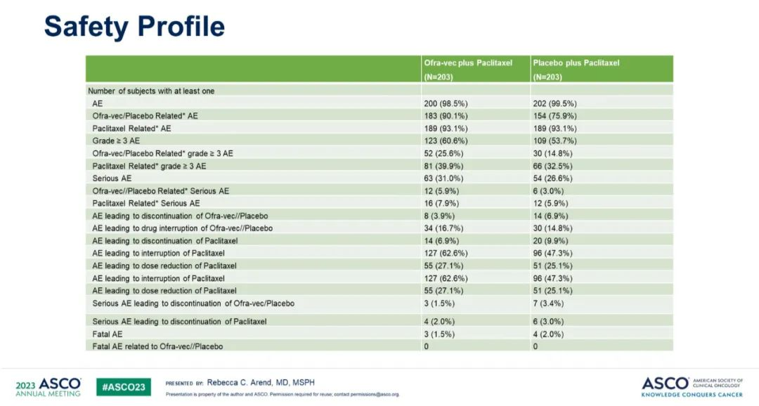 在紫杉醇周疗基础上联用VB-111对铂耐药卵巢癌没有改善其PFS和OS。基于I/II期研究和OVAL试验中期分析,此次发布的结果令人意外。OVAL试验对照组的PFS超过了基于AURELIA化疗对照组的历史数据,尽管ORR与 AURELIA结果高度一致。AE与基于腺病毒的病毒疗法的预期结果一致。研究作者认为,关于铂耐药患者的未来研究,应包括针对“抗血管生成与血管完整性的协同作用”的药物。