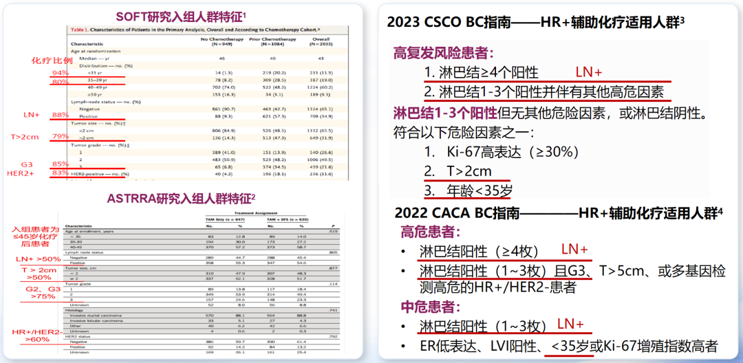 值得注意的是,SOFT研究和ASTRRA研究中接受化疗人群特征与中国CSCO BC以及CBCS指南中“乳腺癌术后中高危患者辅助化疗适用人群”高度匹配[16-17]
