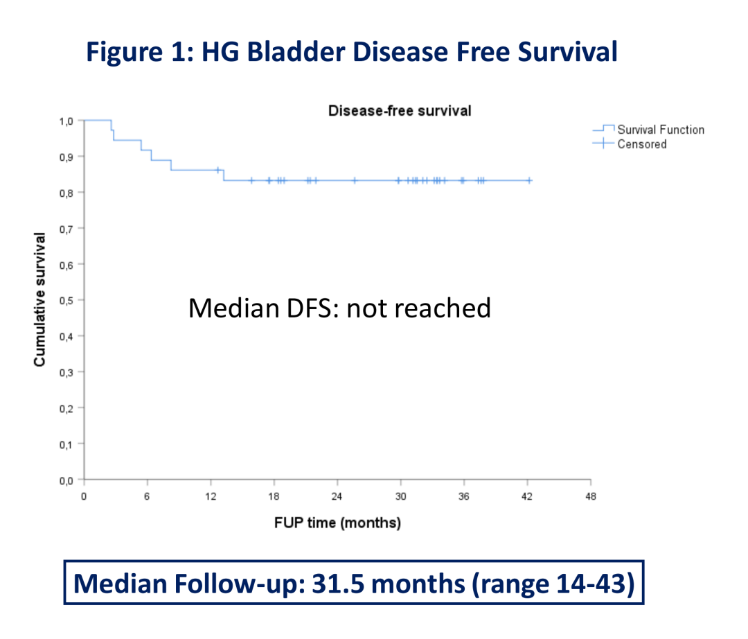 本次EAU大会报道了一项1b/2期BladderGATE研究(摘要号:A0731),入组了36例BCG失败的高危NMIBC患者,在继续BCG灌注治疗(6周诱导,第3、6、12月维持)基础上,给予阿替利珠单抗q3w,最长1年。研究的主要终点显示,2年DFI率达到了72.8%,仅有3例(8%)患者进展为MIBC;且安全性良好,有7例患者因免疫相关不良事件(irAEs)停药,但所有irAEs均可管理,没有死亡报告。该研究表明,BCG联合免疫治疗在BCG失败高危NMIBC患者中是安全有效的,相关的3期试验(ALBAN)正在开展中。