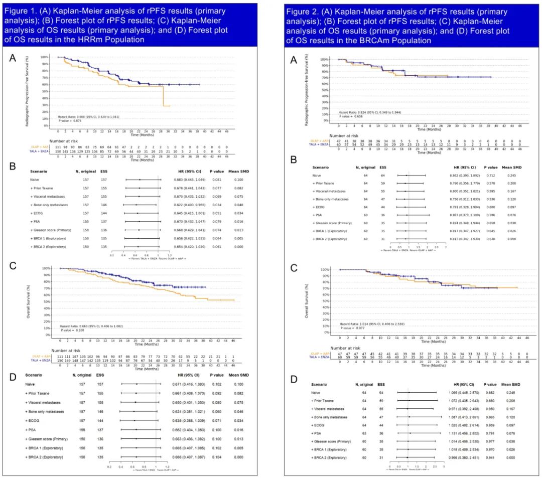 与OLAP+AAP相比,TALA+ENZA的rPFS和OS结果在数值上更优,突显了其在HRR缺陷型mCRPC患者中的治疗潜力,但结果没有统计学显著意义。
