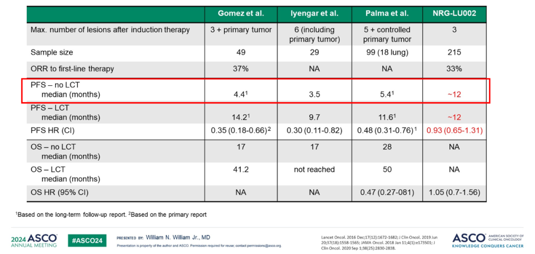NRG-LU002:在局限转移性NSCLC患者中对比维持系统治疗和局部巩固治疗(LCT)+维持系统治疗的随机II/III期研究